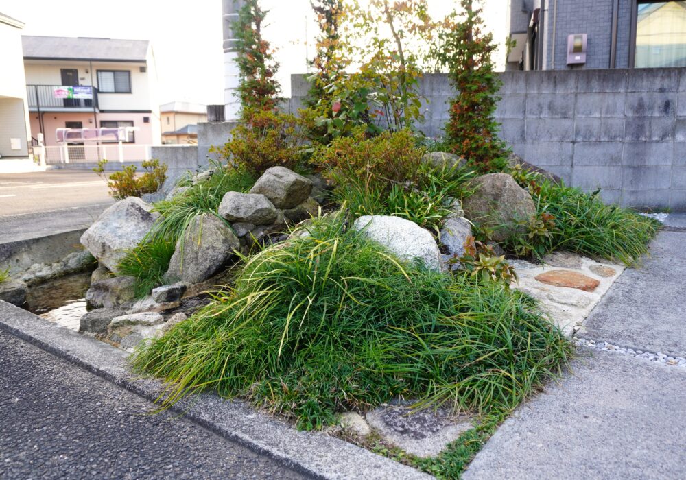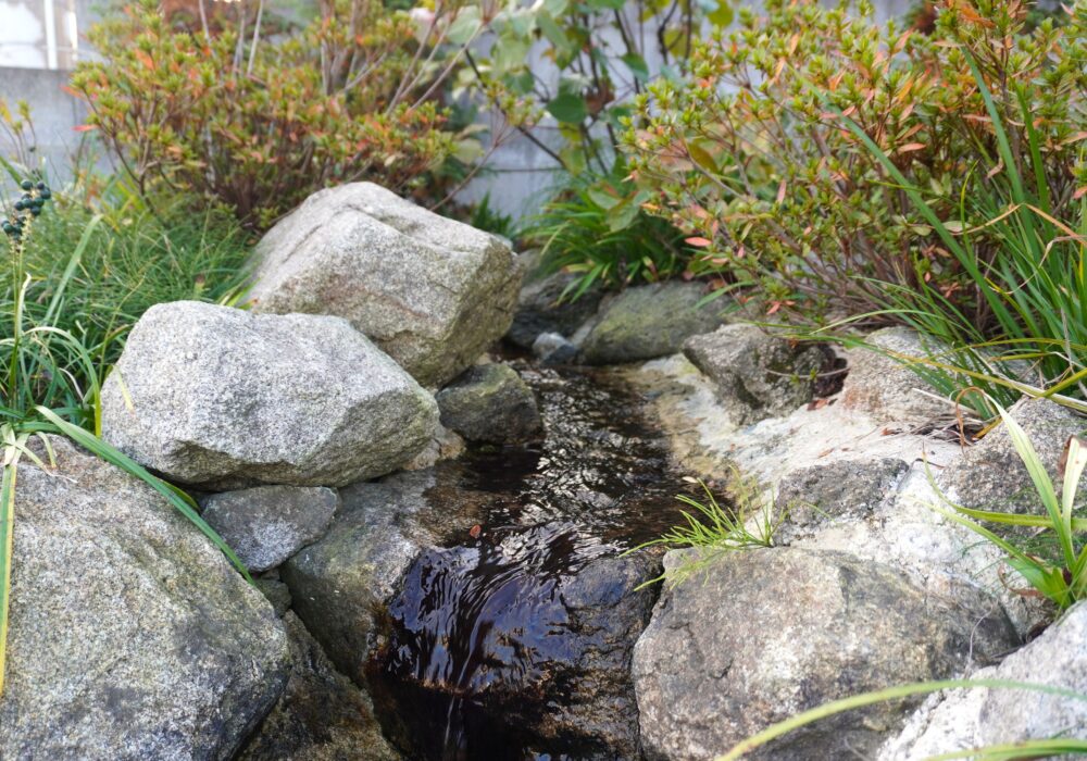 西条の象徴である水をテーマに、小川の流れを活かし、自然を凝縮したような落ち着いた庭へ再構築しました。